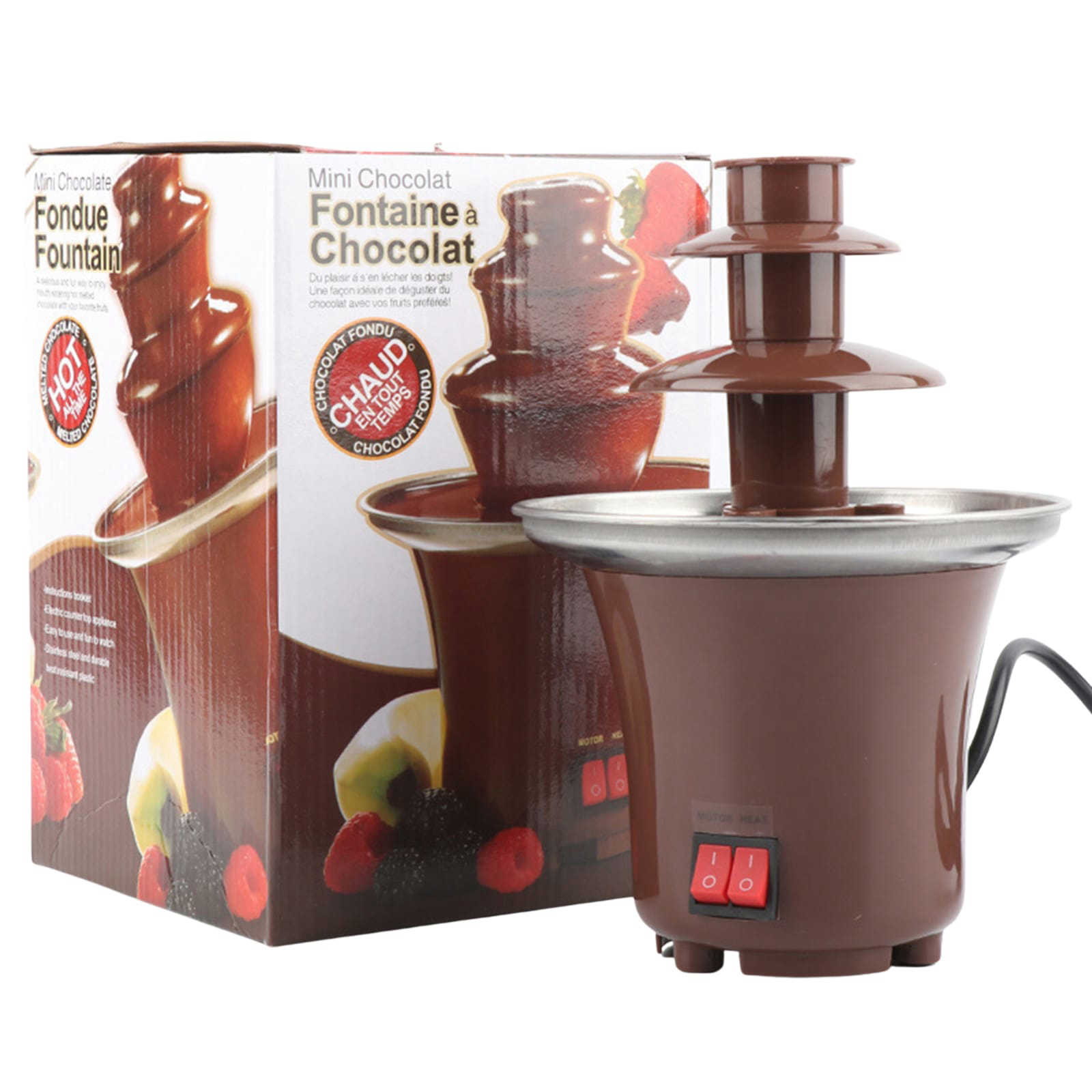 Mini chocolate fountain with three layers, can hold up to 2 kg of melted chocolate, and it is suitable for dipping strawberries, cookies, and more