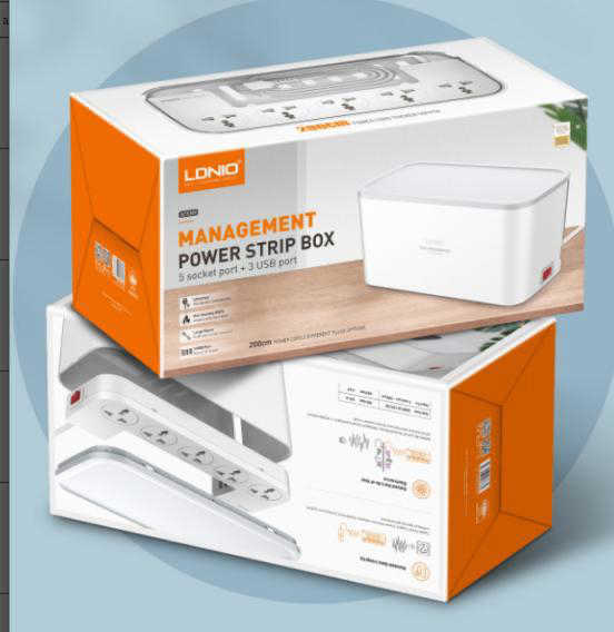 5 - Power Socket Strip Box + 3 Port USB