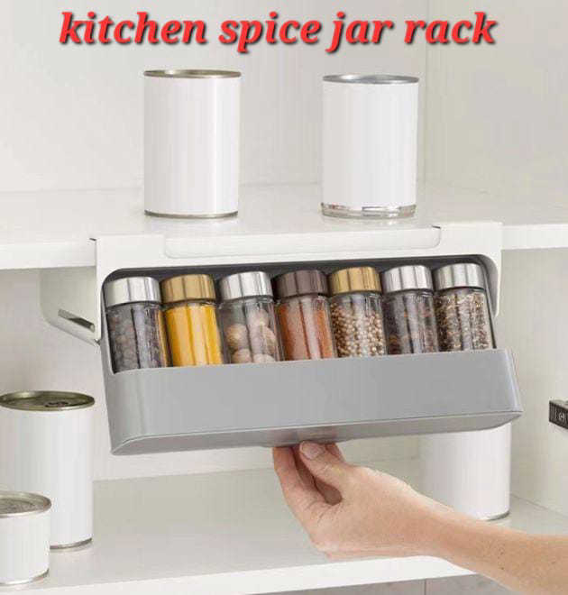 Under-shelf spice organizer designs make advantage of vacant space beneath the shelf because cupboard space is sometimes at a premium. It has an ingenious pull-out section that can accommodate up to six regular spice jars.