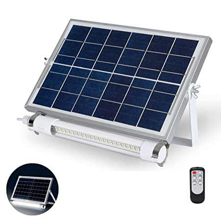 Solar security lighting outdoor that can be mounted on the Wall, and comes with LED tube lights for home, garden, and playground with remote for controlling.